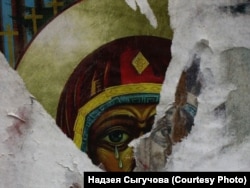 На фота 108 паказаны фрагмэнт зьнявечанага вандаламі абраза Багародзіцы ў Курапатах. Аўтар паслухаў парады, але крыху перастараўся. Фрагмэнт узяты занадта буйна. Трэба зьменшыць маштаб і папрацаваць над кампазыцыяй фрагмэнту. Павінны быць выяўленыя і вандалізм, і падтэкст новага сэнсу і выразнасьць кампазыцыі: усё гэта творчасьць, якая вымагае «пакутаў творчасьці».