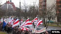 Сярод удзельнікаў шэсьця было шмат моладзі. Сябры грамадзянскай кампаніі “Эўрапейская Беларусь” несьлі плякат “Не рэпрэсіям. Свабоду Аляксандру Баразенку”.