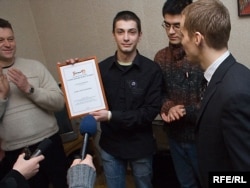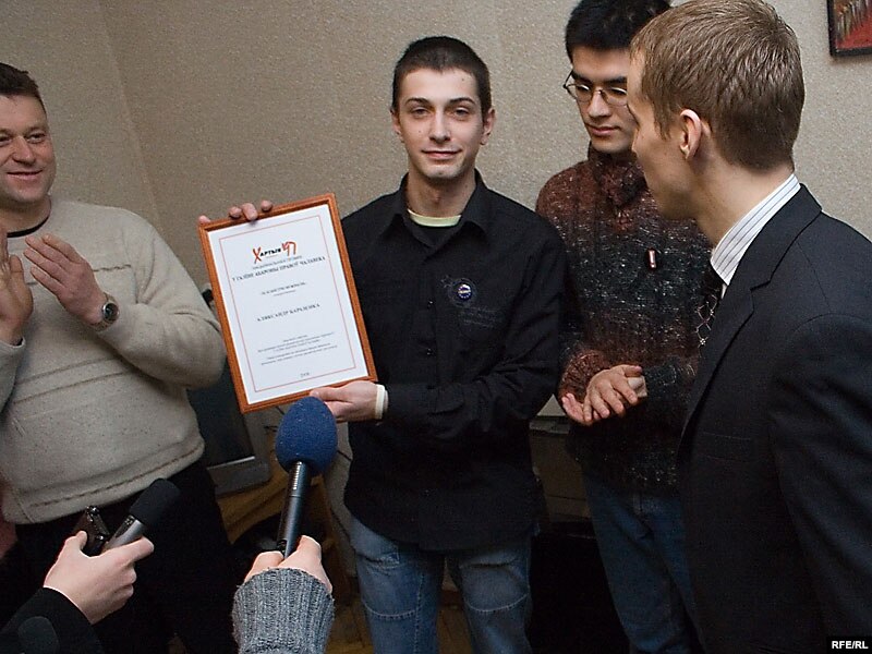 Першым прэмію атрымаў Аляксандар Баразенка — апошні фігурант у так званай “справе 14-ці”, якую распачала пракуратура пасьля студзеньскіх акцый прадпрымальнікаў: