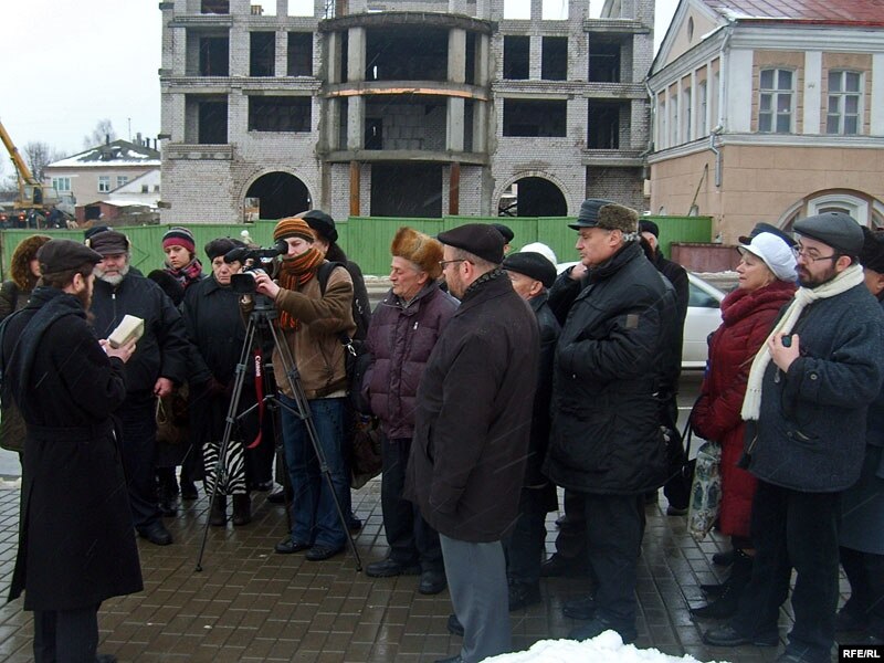 Жалобная ўрачыстасьць адбылася з ініцыятывы магілёўскай габрэйскай грамады. Старшыня грамады Барыс Гольдэнбэрг падзякаваў людзям, якія прыйшлі сёньня да памятнага знаку.