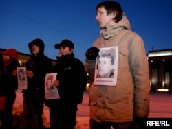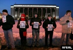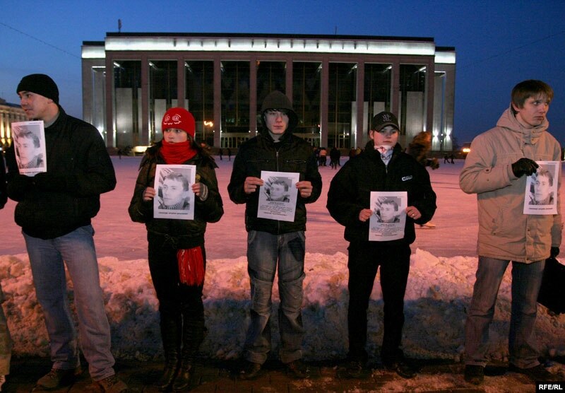 На Кастрычніцкай плошчы дзевяць актывістаў незарэгістраванай арганізацыі “Малады фронт” правялі пікет салідарнасьці з Арцёмам Дубскім, адным зь фігурантаў “справы 14-ці”, заведзенай на актыўных удзельнікаў акцыяў пратэсту прадпрымальнікаў у студзені 2008 году.