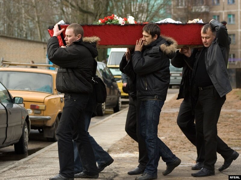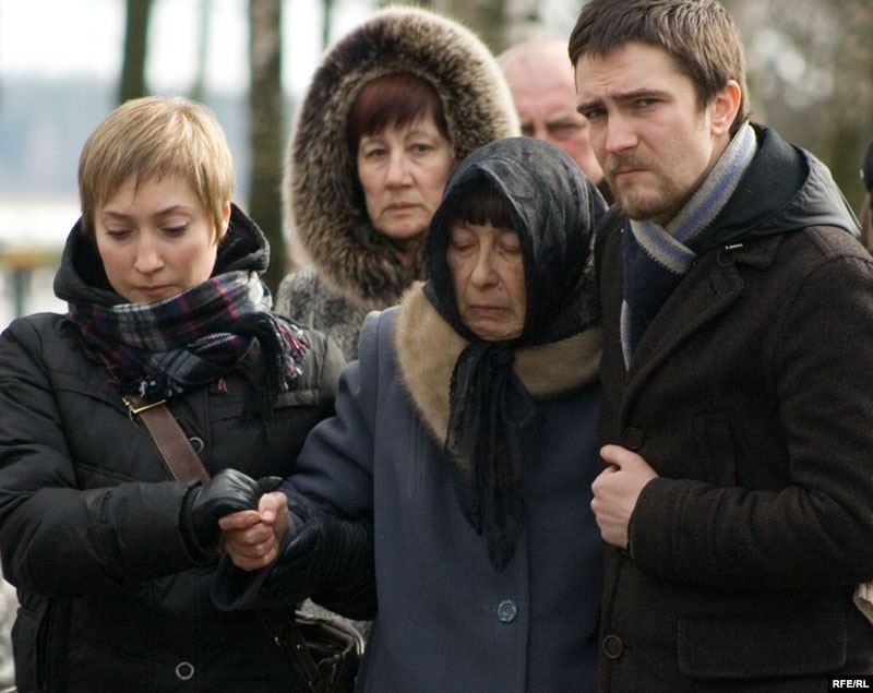 14:35 Пахавальная працэсія прыехала на могілкі. Пачынаецца грамадзкая паніхіда.