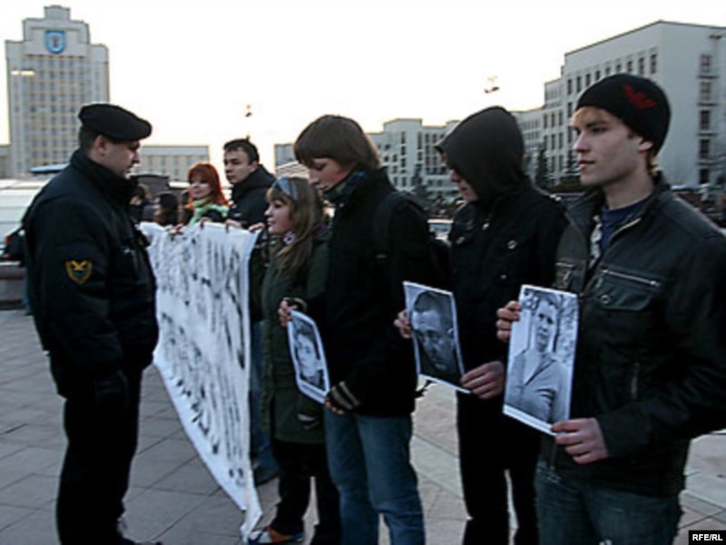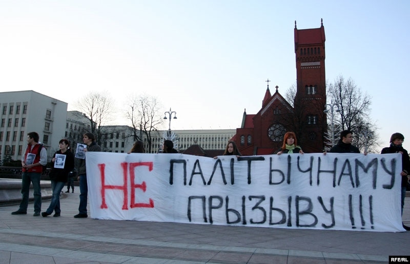 Іншая мэта акцыі – патрабаваньне вызваліць палітвязьняў. Моладзь скандавала "Свабоду!" і трымала ў руках партрэты Мікалая Аўтуховіча, Юрыя Лявонава, Ігара Асіпенкі і Арцёма Дубскага, якога, магчыма, у канцы гэтага месяца будуць судзіць за парушэньне правілаў адбыцьця пакараньня па справе 14-ці.