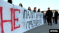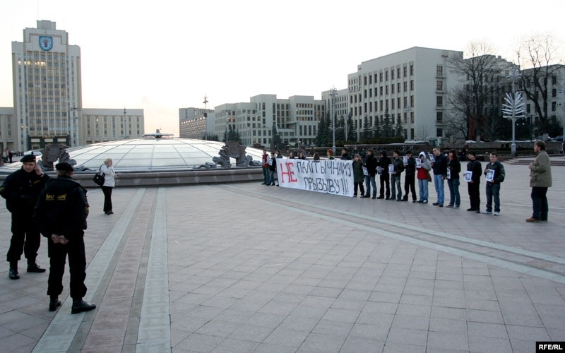 Усяго іх каля 30 чалавек. Да іх адразу падбегла кіраўніцтва міліцыі Ленінскага раёну і байцы спэцназу. Моладзь трымала вялікую расьцяжку "Не палітычнаму прызыву" Такім чынам яны выказваюцца супраць дзеяньняў вайскоўцаў, якія пад кіраўніцтвам людзей у цывільным праз ваенкаматызабралі ў войска некаторых моладзевых актывістаў.
