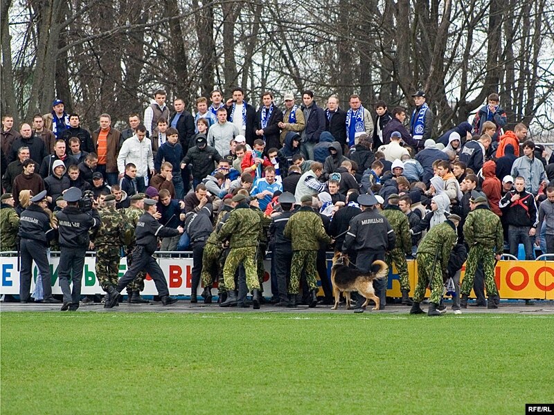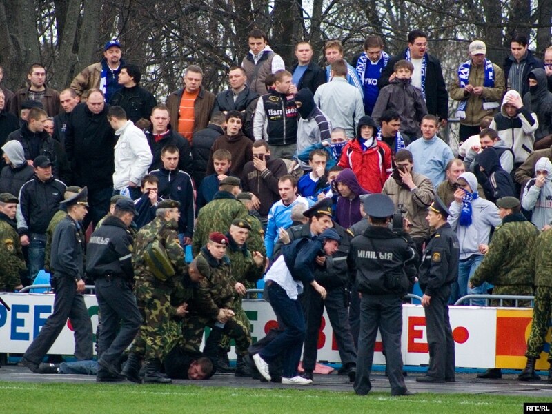 12 красавіка ў Смаргоні падчас гульні другога туру чэмпіянату Беларусі па футболе “Смаргонь” – “Дынама Менск” адбыліся сутычкі мясцовай міліцыі зь менскімі фанатамі.