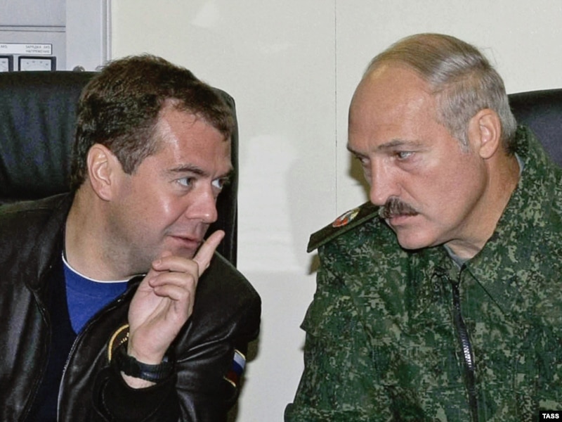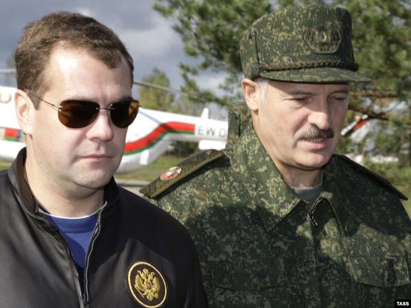 Першым на аэрадром 61-й зьнішчальна-авіяцыйнай базы паветраных сілаў Беларусі ў Баранавіцкім раёне Берасьцейскай вобласьці прыляцеў Дзьмітрый Мядзьведзеў. Ён быў у цывільнай, скураной куртцы з расейскай дзяржаўнай сымболікай.
