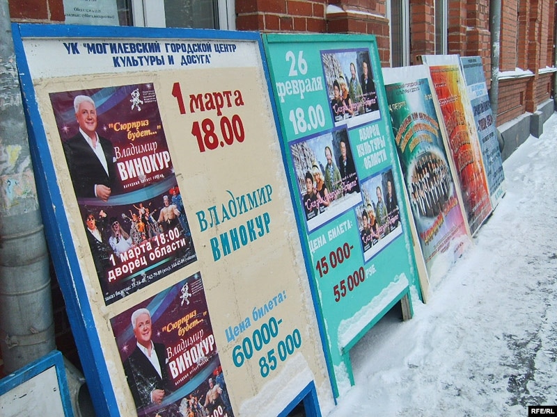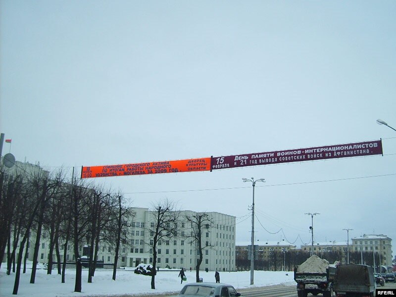 У Магілёве за паўтара месяца існаваньня праграмы не зьмянілася нічога ў афармленьні інфармацыйных стэндаў каля дзяржаўных устаноў. Яны на расейскай мове. Аб’явы на расьцяжцы каля аблвыканкаму таксама па-руску.