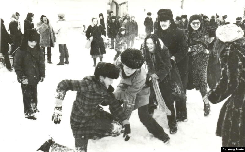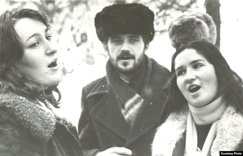Каляды, 1982 год. Ірына Крук, Сяргей Запрудзкі, Алена Амельчыц (Анісім). Фота з архіву.