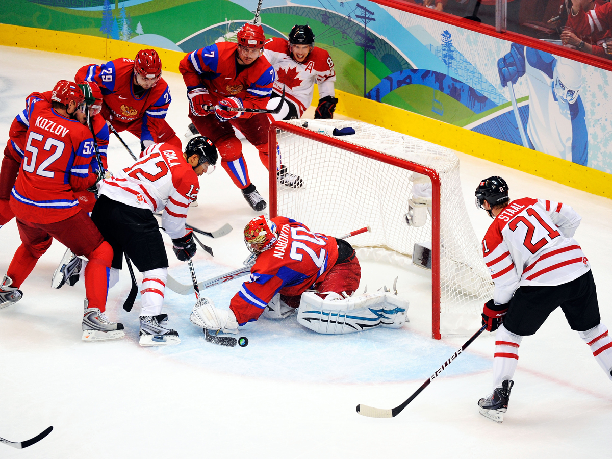 У мужчынскім турніры па хакеі Злучаныя Штаты адпомсьцілі швайцарцам за паразу беларускай зборнай напярэдадні, выйграўшы зь лікам 2-0. Канада ўпэўнена абыграла Расею, забіўшы сем шайбаў і прапусьціўшы толькі тры. Чэская каманда выбыла з турніру, прайграўшы фінам зь лікам 2-0. Трынаццаты дзень алімпіяды завершыць сустрэча зборных па хакеі Швэцыі і Славаччыны.