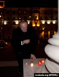 Пасьля завяршэньня акцыі частка ўдзельнікаў падышла да будынку КДБ і паставіла сьвечкі на ганку каля калёнаў.