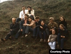Вандроўка ў Люцінку, Ракаў, Івенец. Лета 1983 году. Стаяць Вінцук Вячорка, Алесь Суша, Мікола Сасноўскі, Сяргей Мурашка, Аліна Садоўская, Сяргей Шупа. Сядзіць Пётра Садоўскі.