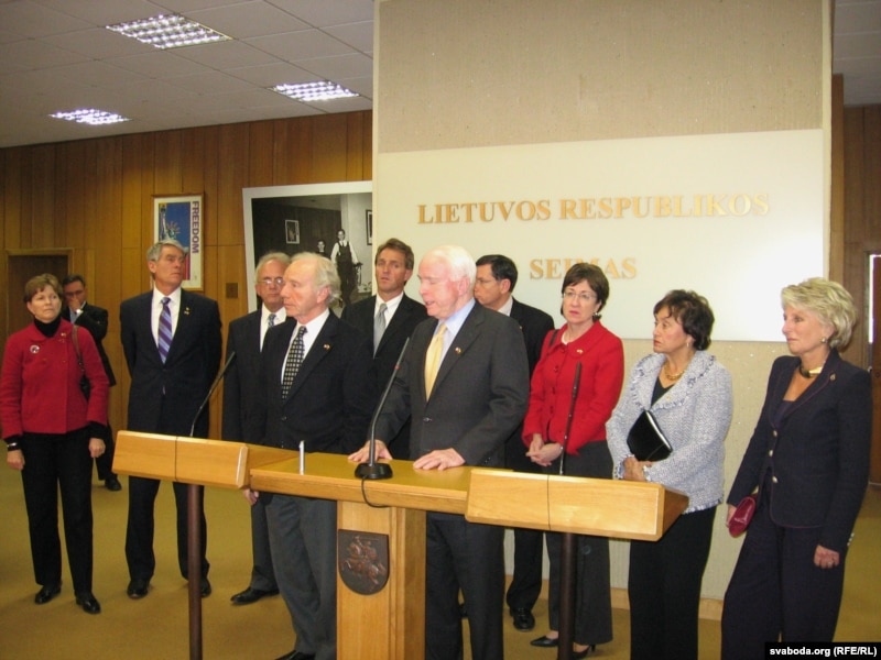 "Спадар Лукашэнка не на тым баку гісторыі, – дадаў сэнатар-рэспубліканец Джон Маккейн. – Раней ці пазьней мы ўбачым дэмакратыю і свабоду ў Беларусі таксама як ў Літве, Латвіі і Эстоніі. Народ у Беларусі ведае вельмі добра, што дэмакратыя існуе ўжо ў ягоных суседзяў. І беларусы будуць мець тую ж свабоду."