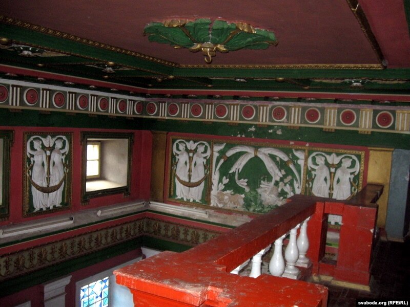 А ўся справа ў некранутай часам столі, некаторых сьценах і калёнах, упрыгожаных барэльефамі. За саветамі тут быў саўгас-тэхнікум, у вайну — нямецкі шпіталь. Сёньня палова палаца, дзякуючы кіраўніцтву Кіраўскага раёну, рэстаўруецца. У другой дзейнічае музэй. Супрацоўніца музэю Ірына Шляхтава заўжды гатовая правесьці экскурсію для рэдкага наведніка.