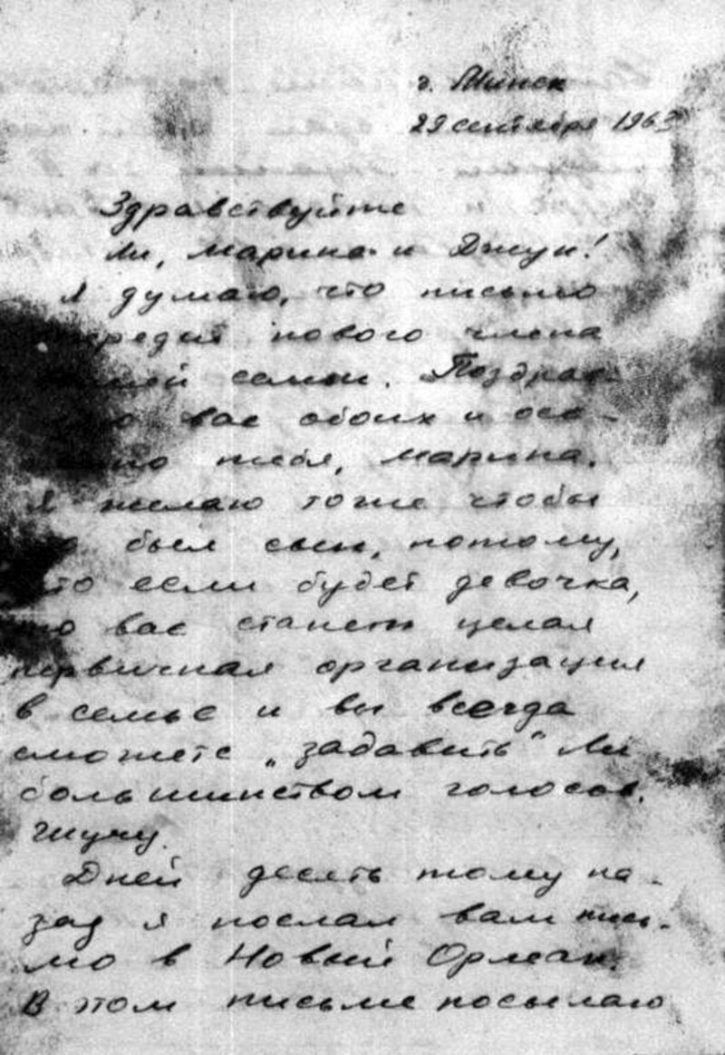 У дакумэнтах Камісіі Ўорэна захоўваюцца лісты зь Менску, адрасаваныя Освальдам, у тым ліку і лісты Паўла Галавачова і фота: Павал сядзіць на тахце з дэтальлю тэлевізара.