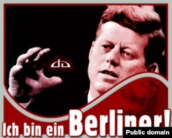 **Цалкам гэтыя словы салідарнасьці, зь якімі Кенэдзі зьвярнуўся да жыхароў Бэрліну за чатыры месяцы да забойства, гучаць так: “Дзьве тысячы гадоў таму найвышэйшым гонарам былі словы civis Romanus sum (я – рымскі грамадзянін). У свабодным сьвеце сёньня словамі найвышэйшага гонару зьяўляюцца “Я – бэрлінец!”