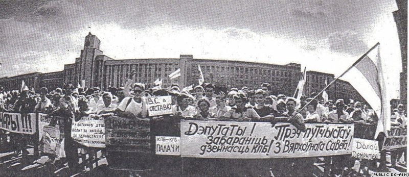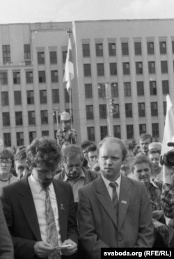 19 жніўня, у першы ж дзень маскоўскага праімпэрскага путчу, Апазыцыя БНФ вывела людзей на плошчу перад Домам ураду. Мы запатрабавалі ад кіраўніцтва ВС і Саўміну, старшыні КДБ і міністра ўнутраных спраў выкананьня Канстытуцыі і законаў, заявілі аб неабходнасьці скліканьня нечарговай сэсіі аб прыняцьці Незалежнасьці.