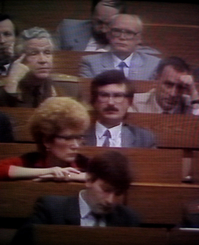 Прыступілі да фармаваньня парадку дня сэсіі. Пачалі засьведчваць сваю пазыцыю так званыя дэпутаты-“перабежчыкі”, якія раней памоўчвалі альбо пагаджаліся з камуністамі. Асабліва пафасна адзначыўся наш беларускі касманаўт-генэрал Уладзімер Кавалёнак. Прадстаўляючыся, ён назваў сваю парлямэнцкую прыналежнасьць так: “Ад апазыцыі!”. І аб’явіў, што ён выйшаў з шэрагаў КПСС. Усе ведалі, што ён у апазыцыю не ўваходзіў. Але гэты трук успрынялі аплядысмэнтамі. На зьбянтэжаных камуністаў выбар Кавалёнка падзейнічаў прыгнечана і злавесна.