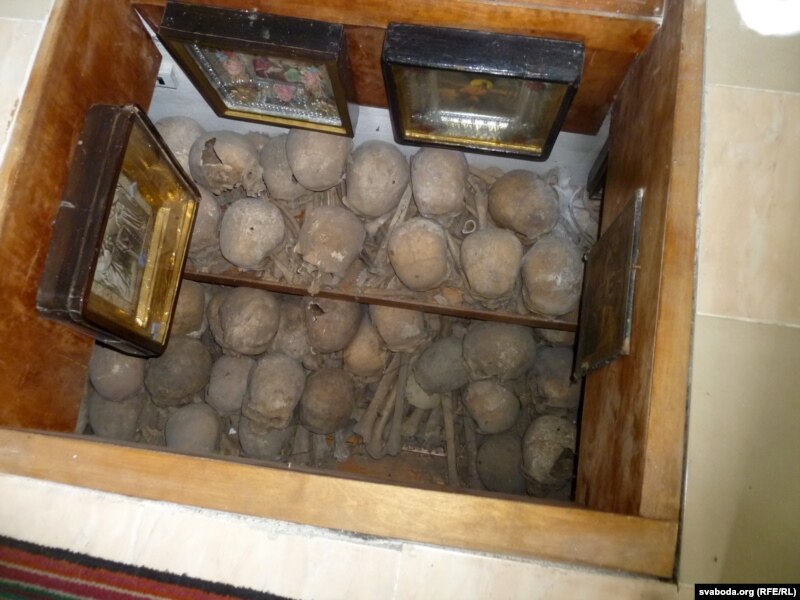 «Знайшлі толькі сто тры чарапы пад фундамэнтам і яшчэ 12 у алтарнай частцы, у храме. Мы молімся, калі на Дзяды, аб гэтых людзях як аб бязьвінна забітых».
