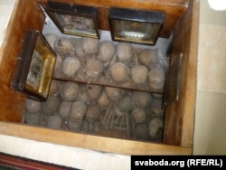 «Чарапы ў нас захоўваюцца ў пахавальні. Там чытаюць сёстры Псалтыр і там, у сутарэньні, знаходзіцца больш за сто чарапоў. Калі быў рамонт сабору, тады й знайшлі гэтыя пахаваньні. Потым рабілі запыт у аблвыканкам — нам, зразумела, нічога не сказалі. Многія, аднак, прыходзяць і пацьвярджаюць, што гэта праца НКВД», — апавядае адна з манашак.