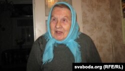 — Тая кніжка прыйшла мне. І там усё тагдашняе. Таго часу. Напісана нават, як па-вулічнаму завуць людэй у нас. Па нашым раёне ўсё там ёсьць. Фатаздымкі. Быў такі замкультуры Выргун Вася, то він там е на фотографіі. Яго замучылі ў лягеры нашы, НКВД. Яна мне напомніла ўсё маё жыцьцё. Твій бацька і Бойцік не далі мяне ў Германію забраты. Анцута быў загадчык магістрата. Я там была сакратаром-машыністкаю. Яны мяне ўзялі, і я так перажыла Германію.