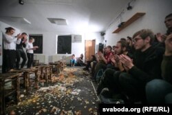 «Будзе несумленна перад беларускім гледачом не паказаць спэктакль тут», — сказала прадстаўніца СТ Сьвятлана Сугака перад трыма дзясяткамі жыхароў і жыхарак Менску, якія сабраліся перадкалядным вечарам серады 23 сьнежня паглядзець «Пякельную кухню».