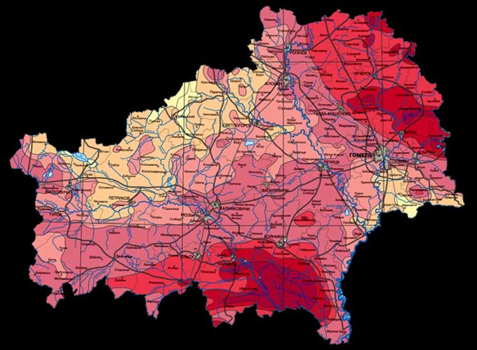 Забруджваньне цэзіем-137 закранула 66% плошчы краіны (звыш 130 тысячаў квадратных кілямэтраў).