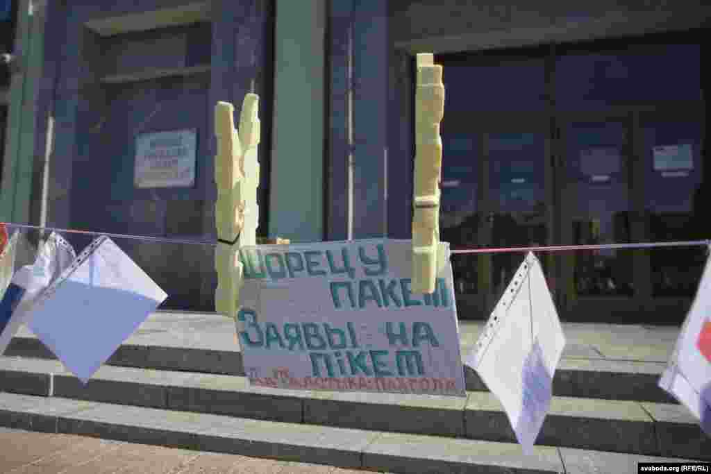 Кандыдаты ў дэпутаты пікетавалі Менгарвыканкам зь бінтамі на галаве