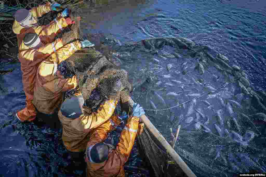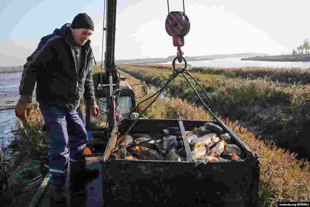 Пасьля рыбу вылаўліваюць, каб далей перавезьці яе на зіму ў больш прыстасаваную сажалку.