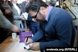 Усім прысутным Зьміцер Бартосік падпісаў сваю кнігу.