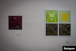 Больш за ўсіх публікі сабраў вакол сваёй адзінай карціны лідэр гурту «Палац» Алег Хаменка. Прафэсійны шоўмэн, ён ведае адмысловыя прыёмы. Так, на выставе заінтрыгаваў усіх загадкамі: што ж зашыфравана ў ягоным графічным творы? Коцікі, надпісы «Жыве Беларусь!» і «Палац» — усё проста, але забаўна.