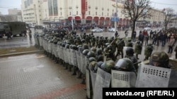 Каля 14.15 калёна зь некалькіх соцень чалавек рушыла з раёну Акадэміі навук у бок цэнтру гораду. У 14.20 АМАП перакрыў калёне дарогу па ходніку. Калёна перабегла на іншы бок вуліцы, а АМАП тады перакрыў увесь праспэкт. Байцы былі ўзброеныя ня толькі дубінкамі і шчытамі, але і стрэльбамі. Каля 14.30 выставілі два кардоны — перад ЦУМам і каля вуліцы Дарашэвіча. Пайшлі масавыя затрыманьні, пачала перарывацца сувязь, пад’ехалі вадамёты.