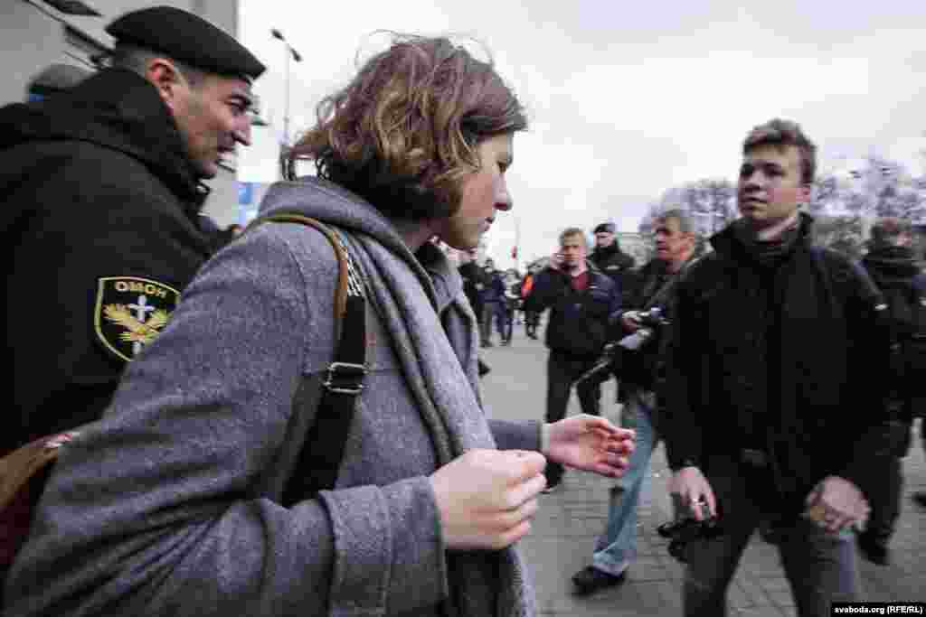 На Кастрычніцкай плошчы ў цэнтры Менску затрымалі дзясяткі людзей. Людзі прыйшлі, адгукнуўшыся на заклік выказаць салідарнасьць з тымі, каго затрымалі ўчора, падчас адзначэньня Дня Волі.