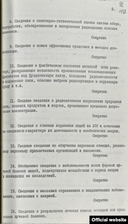 ПЕРЕЧЕНЬ сведений, подлежащих засекречиванию по вопросам, связанным с аварией на блоке № 4 Чернобыльской АЭС (ЧАЭС).