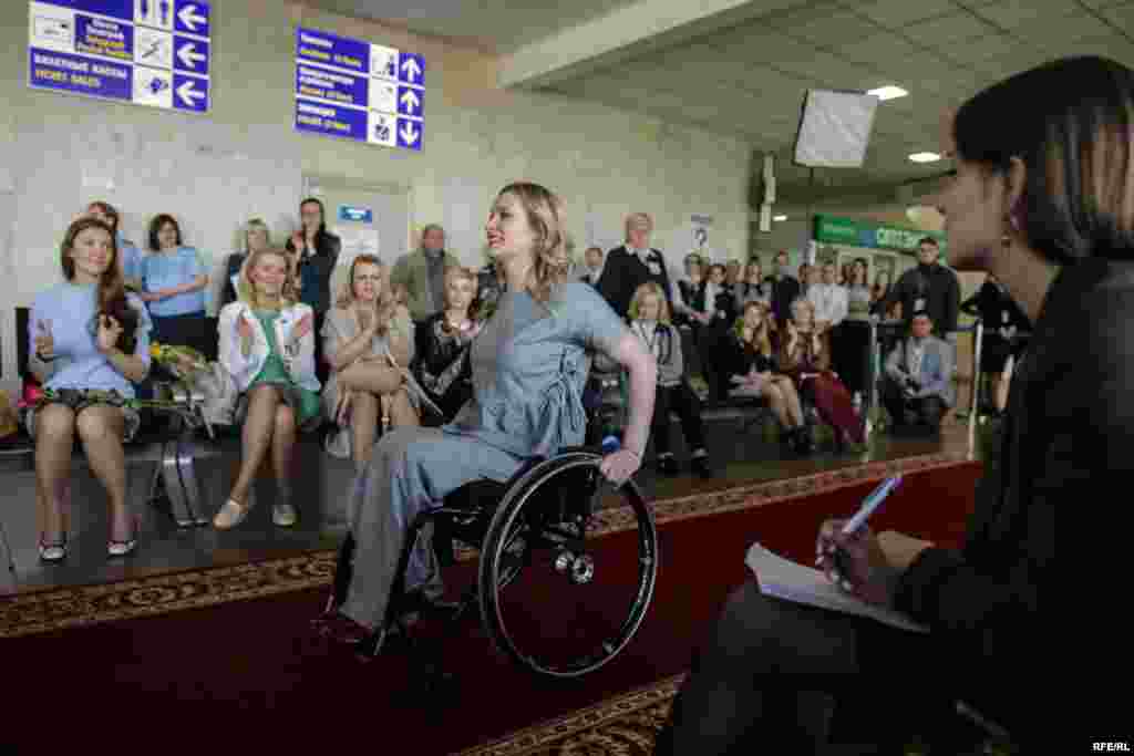 У нацыянальным аэрапорце прайшоў першы у Беларусі fashion-паказ адзеньня для вазочнікаў дызайнэркі Кацярыны Цікоты.