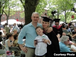 — Мая жонка паступіла ў магістратуру Гарвардзкага ўнівэрсытэту, скончыла школу права і атрымала дыплём магістра. Я вучыўся ў Джорджтаўнскім унівэрсытэце ў Вашынгтоне па двухгадавой праграме (яна таксама першая ў рэйтынгу, як і праграма маёй жонкі), атрымаў дыплём магістра ў галіне міжнародных адносінаў. Некаторы час мы вымушаныя былі жыць на два гарады, жонка з сынам у Бостане, а я ў Вашынгтоне, але пасьля сканчэньня яе праграмы жонка пераехала ў Вашынгтон, і мы пачалі сумесна выкладаць дарогу да той самай амэрыканскай мары.