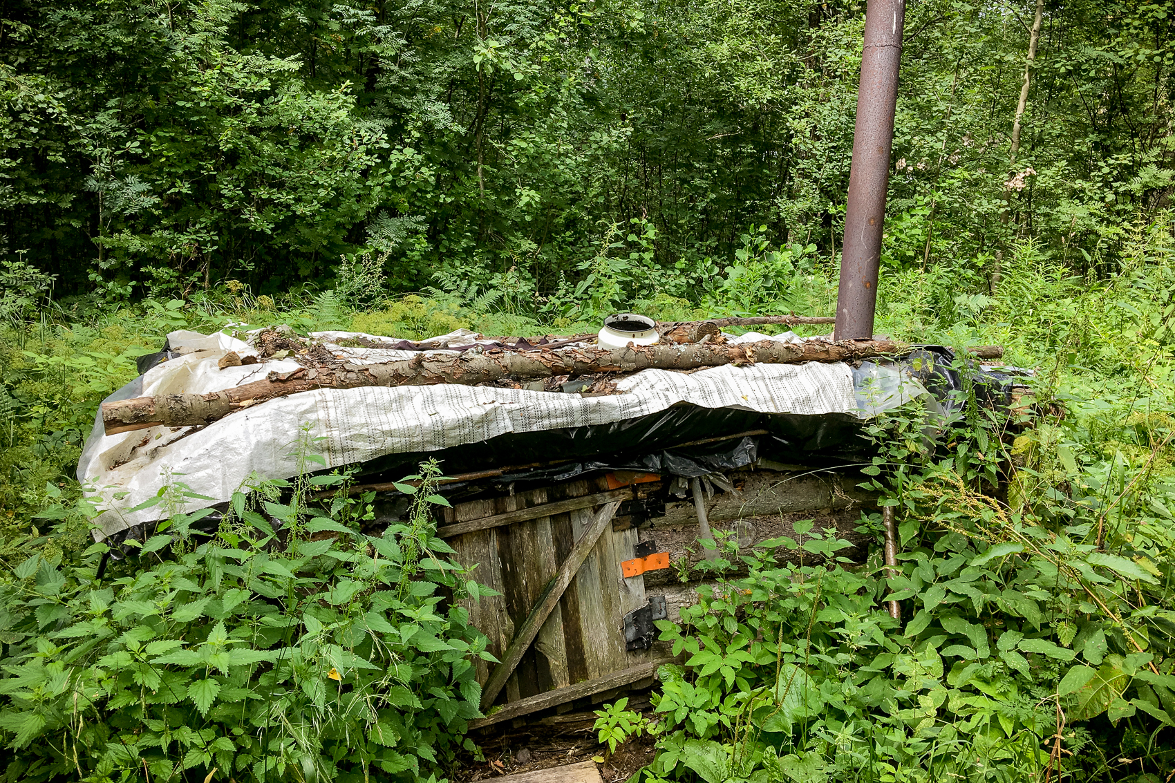 Пасьля вайны на балотах хаваліся дэзэртыры, якія рабавалі навакольныя крамы. Дзім Дзімыч вядзе нас да месца зь іхнай зямлянкай і складам, куды міліцыянты пры штурме кінулі гранаты.