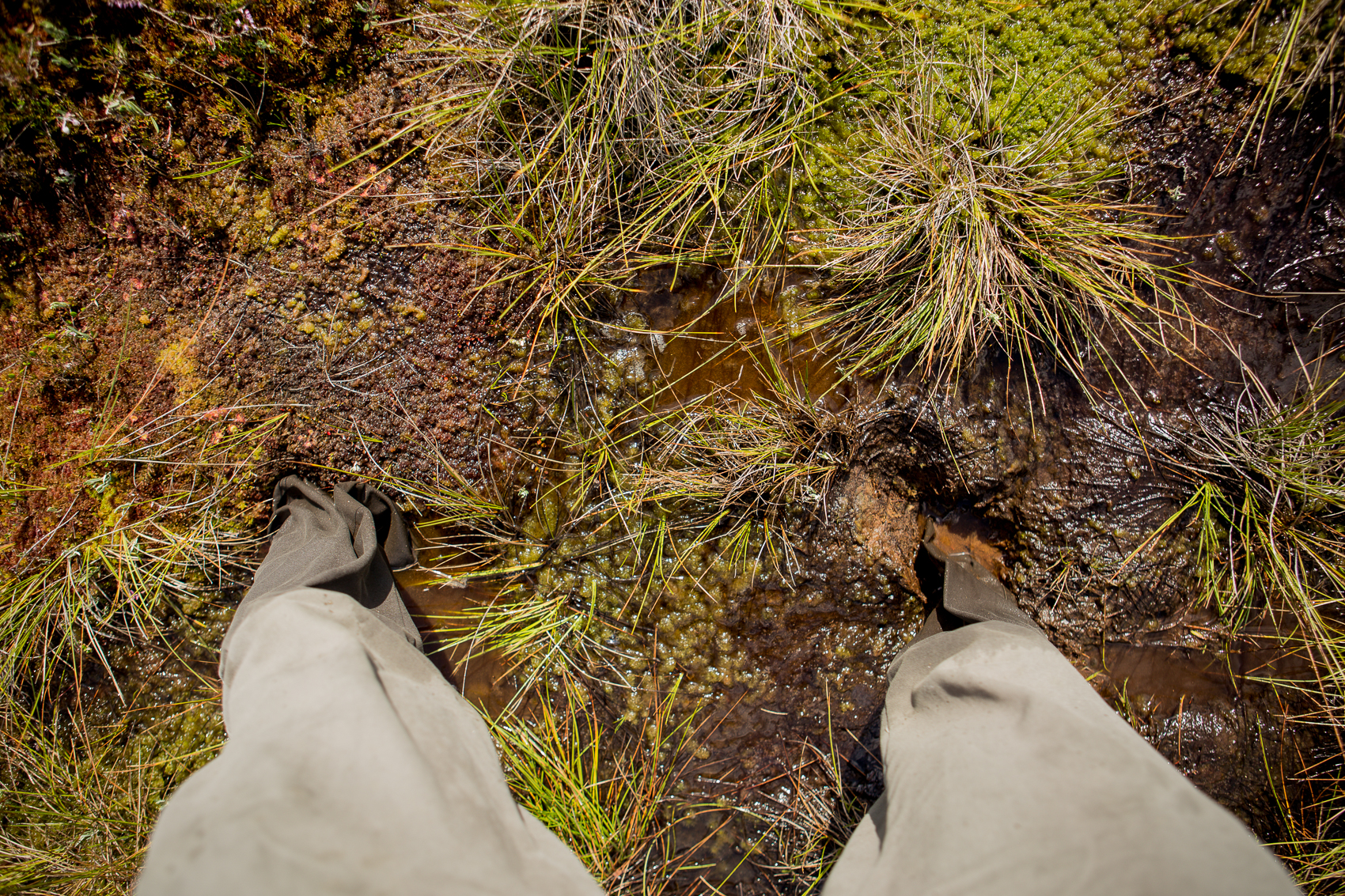 Гумовыя боты тут не дапамогуць. Дасьведчаныя людзі кажуць, што яны скрадуць траціну тваёй энэргіі. Выліваць зь іх ваду на кожным кроку ты ня будзеш. Падчас руху ня раяць нават размаўляць, бо з размовай сыходзяць сілы.