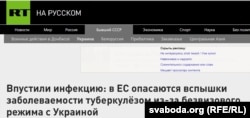 Шэраг расейскіх СМІ паведамілі, што Эўразьвяз занепакоены магчымасьцю ўспышкі тубэркулёзу пасьля таго, як грамадзяне Ўкраіны могуць бязь візы ўяжджаць у ЭЗ. Расейскія сайты і СМІ назвалі сытуацыю катастрафічнай і выдалі несуцяшальны прагноз: яна будзе толькі пагаршацца. Алярмісты спасылаюцца на Рассельгаснагляд.