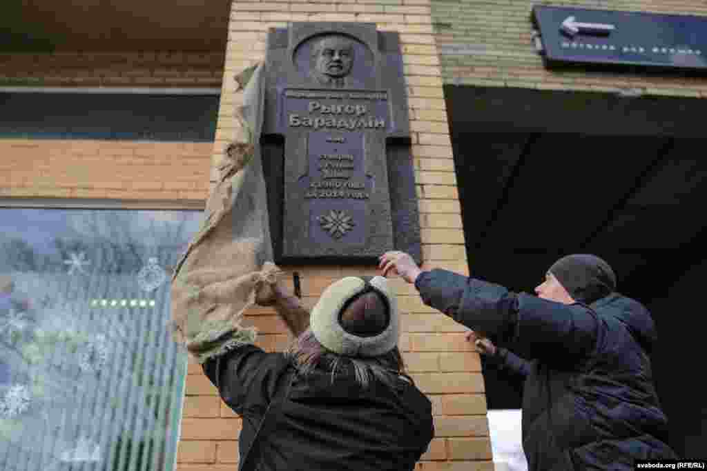 «Штурхальніку» ідэі журналісту Глебу Лабадзенку і старшыні Саюзу мастакоў Беларусі Рыгору Сітніцу апэратыўна ўдалося ўзгадніць усе пытаньні з гарадзкімі ўладамі. На барэльефе пазначана, што ў гэтым доме цягам 1980-2014 гадоў жыў і ствараў народны паэт Беларусі Рыгор Барадулін.
