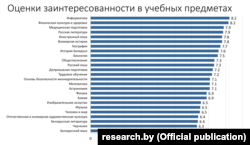 «Вельмі вялікі інтарэс да большасьці прадметаў. Самы нецікавы прадмет — гэта беларуская мова (6,0). За ім чарчэньне (6,3) і беларуская літаратура (6,4). Для настаўнікаў гэта было званочкам пра тое, што беларуская культура або няправільна падаецца ў школе, або патрабуе пэўнай разнастайнасьці», — сказала Дарʼя Урбан.