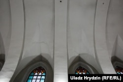 «І сыстэма крокваў, і дахоўка літаральна „разрывалі“ касьцёл. Непрафэсіянальна быў разьмеркаваны цяжар — не на сьцены, а на скляпеньні. І таму сёньня мы можам бачыць нехарактэрныя шчыліны, якія разрываюць касьцёл. Паралельныя сьценам шчыліны — нехарактэрныя. Калі зьмянілі дахоўку, працэс разбурэньня касьцёла прыпыніўся, але далейшы рамонт быў неабходны», — сказаў пробашч Юры Санько.