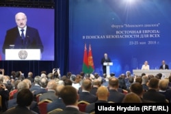 У межах форуму «Менскі дыялёг» кіраўнік Беларусі Аляксандар Лукашэнка выступае з дакладам у панэлі «Як зрабіць Усходнюю Эўропу рэгіёнам супрацоўніцтва, а не канфрантацыі».
