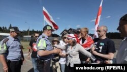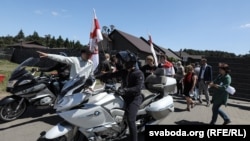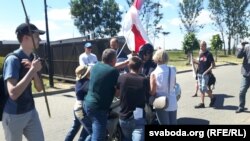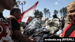 У адказ на словы пікетоўцаў, што тут ахоўная зона, байкеры толькі націскалі на газ. Двум ўдалося праехаць праз натоўп, але трэцяга пікетоўцы ўсё ж спынілі.