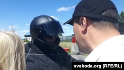 Кіроўца Аляксандр не назваў свайго прозьвішча і адразу выклікаў міліцыю. Пікетоўцаў ён прасіў не чапаць ягоны «дарагі матацыкл», а пра сябе сказаў, што ён «не багаты чалавек, а нармальны». Пры гэтым адмовіўся зьняць шлем.