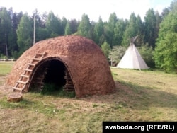 Мы падышлі да самай касьмічнай пабудовы. Сфэрычнай канструкцыі з лазы і гліны. Калі дзе і ладзіць форумы беларуска-амэрыканскай дружбы, дык толькі на «Утрыне».