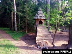 У «Мядзьведжым кутку» гаспадыня ўзнаўляе капішча ў гонар патрона турыстычнага каапэратыву, бога Вялеса.