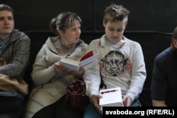 «Я рада бачыць, што вас столькі», — сказала Сьвятлана Алексіевіч, выйшаўшы на сцэну. — Гэта кажа пра тое, што ў склад аніякай дзяржавы мы ня ўвойдзем». Заканчэньне гэтай фразы публіка сустрэла воплескамі.