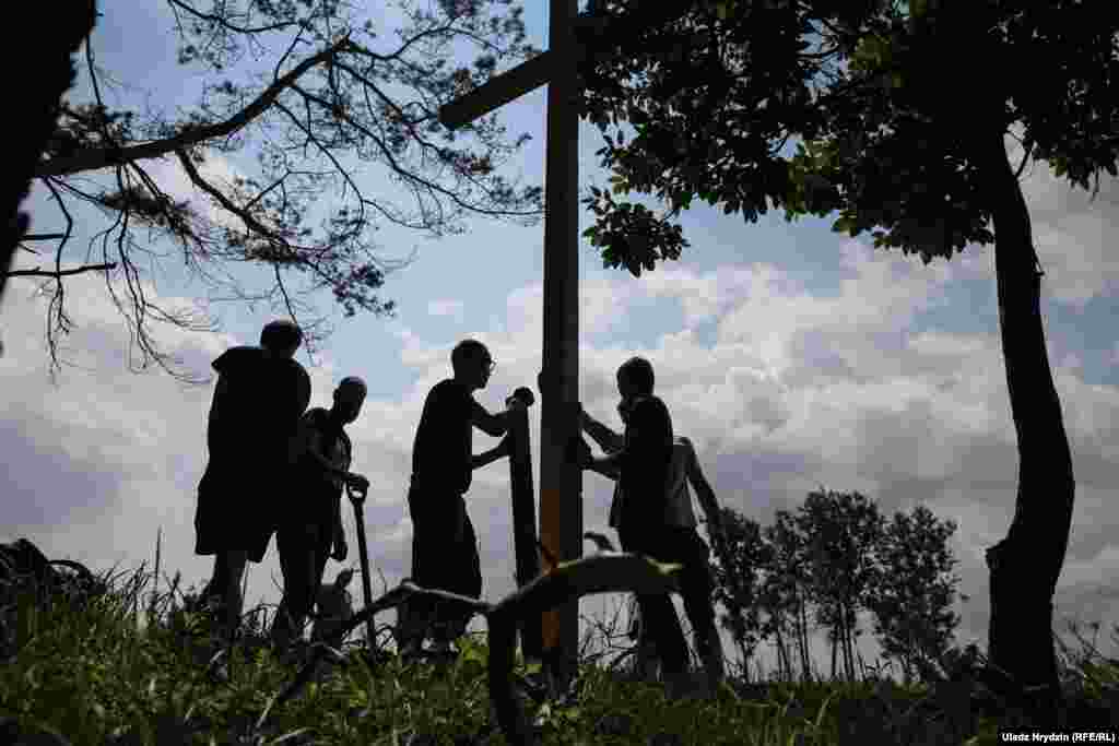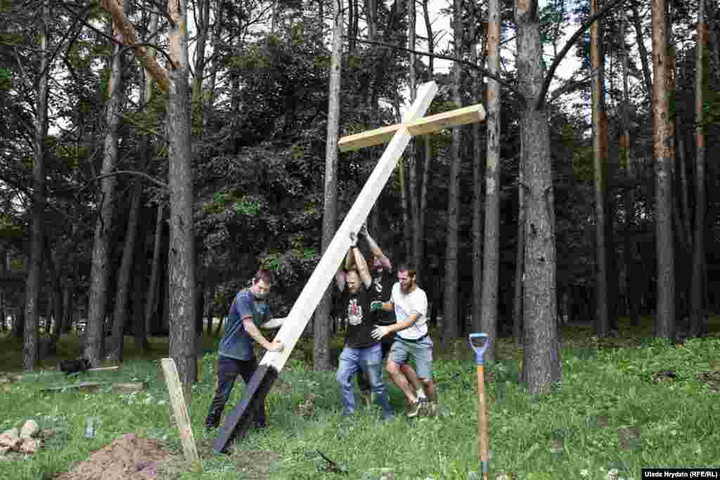 Зьміцер Дашкевіч з паплечнікамі ўсталявалі ў Курапатах 12 крыжоў. ФОТАРЭПАРТАЖ