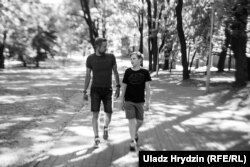 —...Дванаццаць гадоў. З сынам Платонам мы разам бегаем. Дакладней, пачыналі: я заахвочваў Платона бегаць разам і, пэўна, быў кепскім трэнэрам. Бо бегалі нароўні, а для яго гэта хутка. Але празь нейкі час сын глядзеў на мяне, глядзеў, а пасьля захацеў бегаць самастойна.