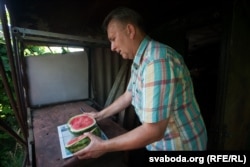 «Пытаўся ў гарадзенцаў, тыя казалі, што ня надта ўдавалася (вырошчваць кавуны. — РС). Нехта цяпер піша, што ў яго вырасьлі — памерам як яблыкі», — кажа дачнік.